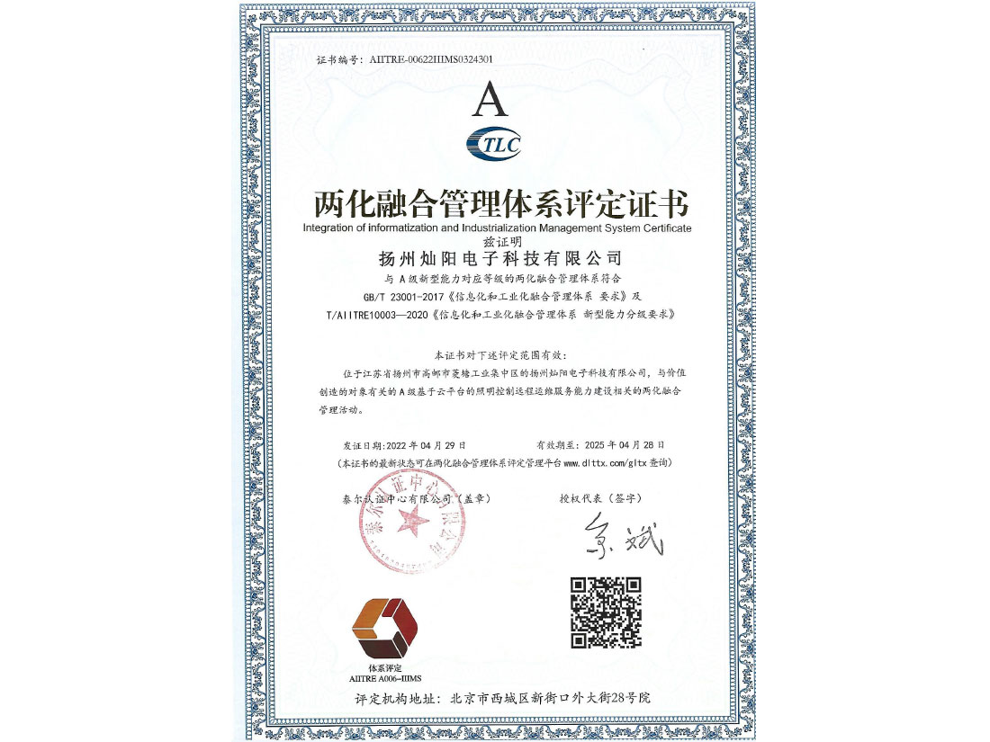 兩化融合管理體系證書